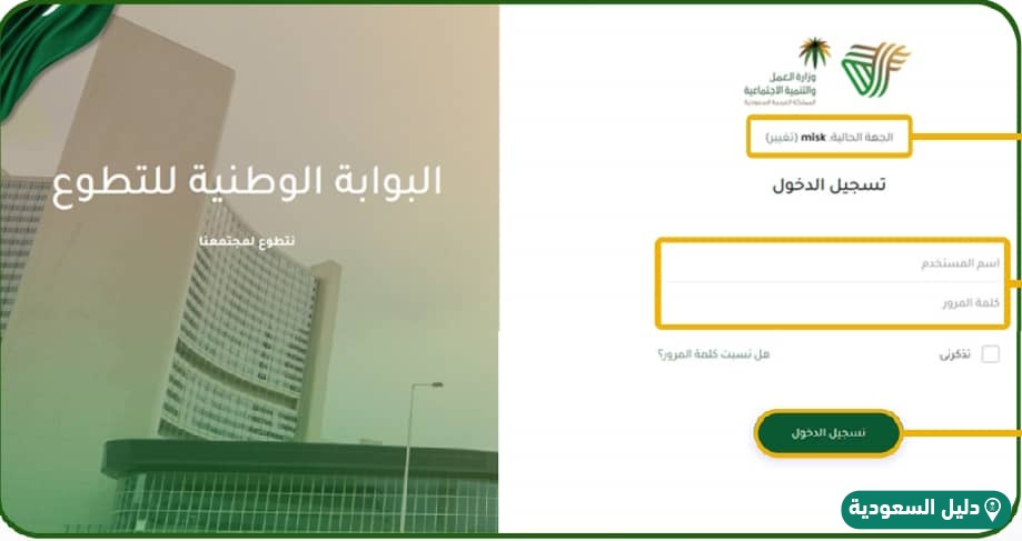 - الانتقال إلى صفحة منصة العمل التطوعي admin تسجيل الدخول “من هنا“.